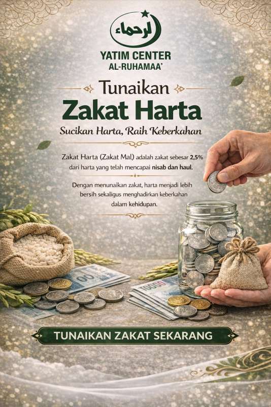 Mari tunaikan Zakat Harta melalui Al Ruhamaa sebesar 2,5?ri harta yang dimiliki.