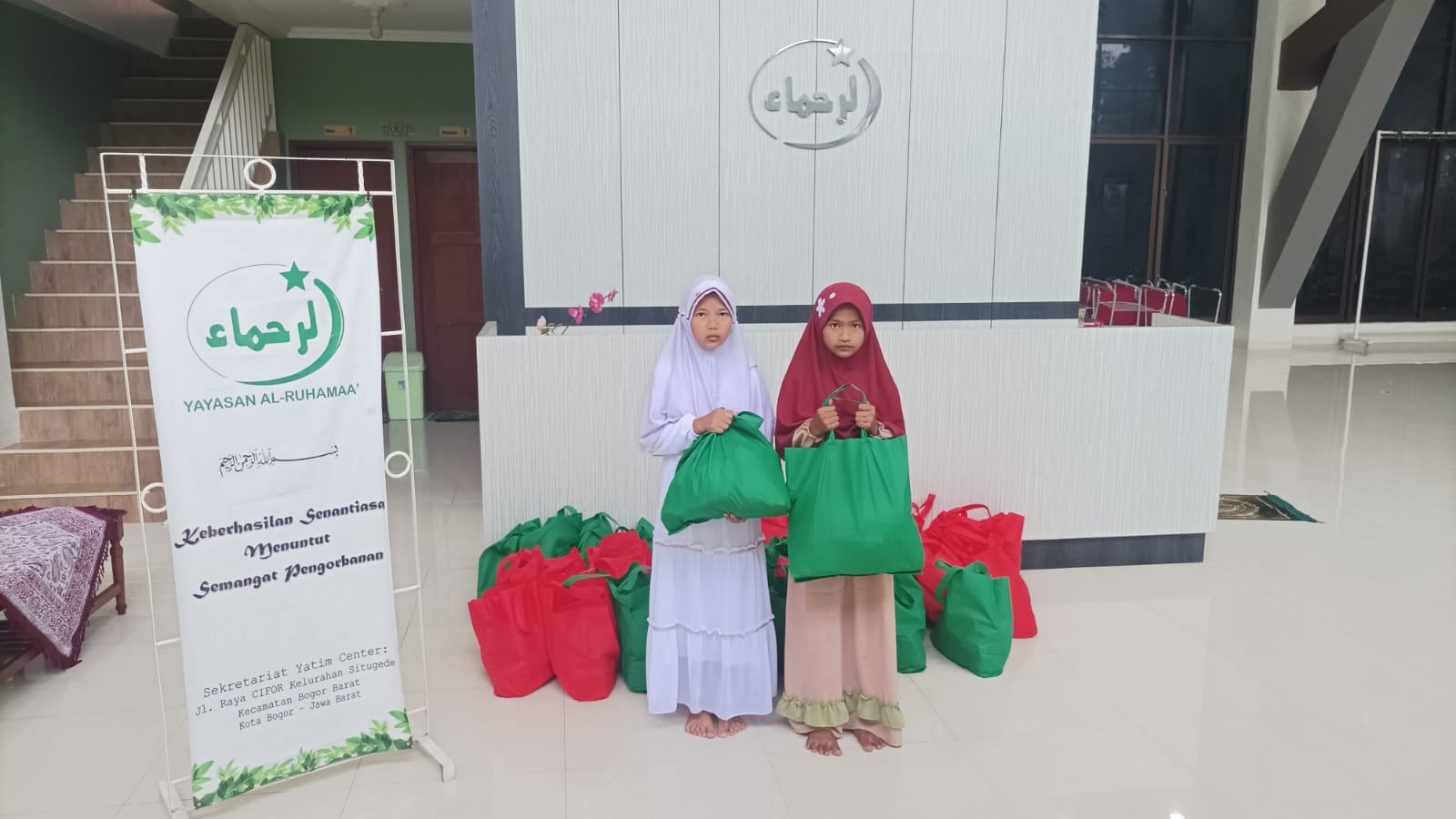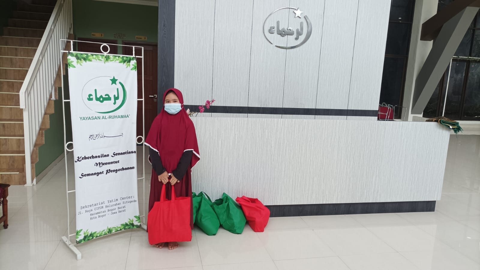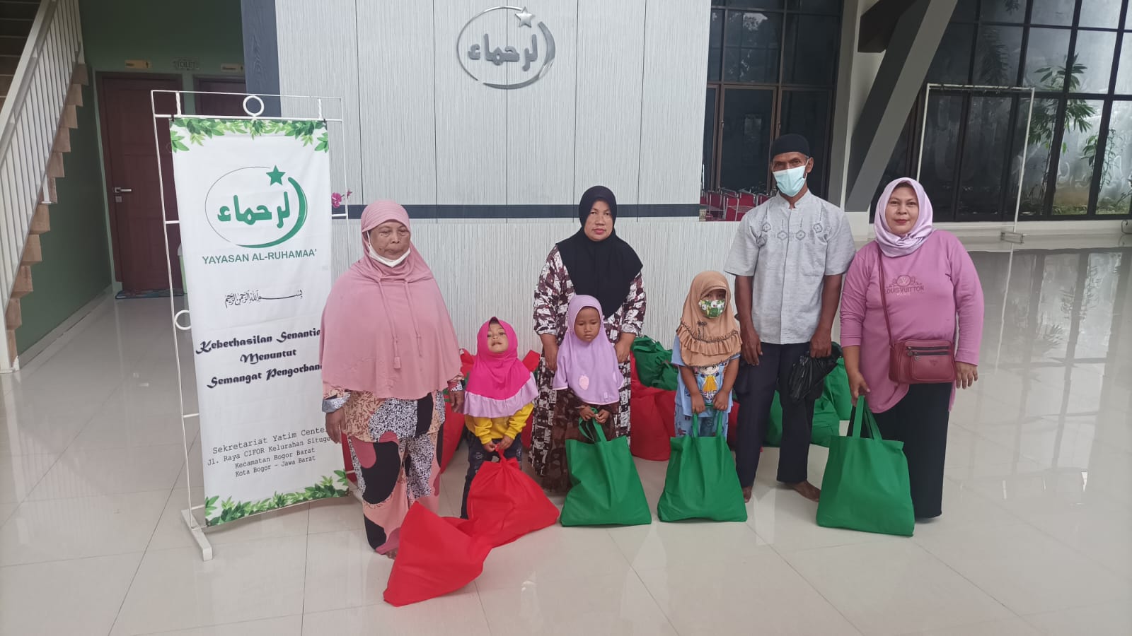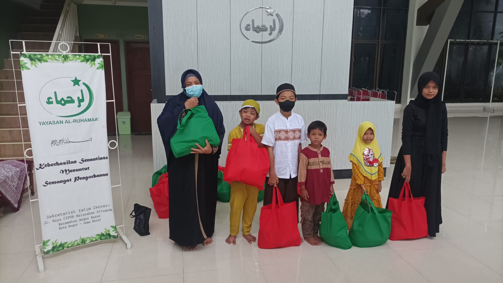Yayasan Al-Ruhamaa’ mendapatkan amanah dari salah seorang donator untuk menyalurkan 50 paket sembako, 50 paket sembako itu disalurkan kepada yatim dan dhuafa di lingkungan sekitar Yayasan Al-Ruhamaa’