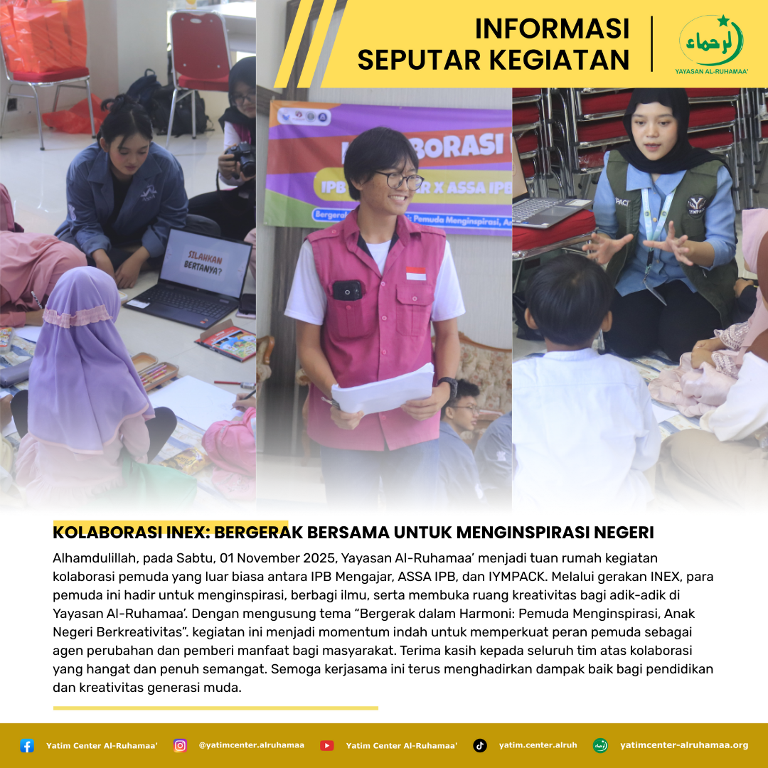 Alhamdulillah, pada Sabtu, 01 November 2025, Yayasan Al-Ruhamaa’ menjadi tuan rumah kegiatan kolaborasi pemuda yang luar biasa antara IPB Mengajar, ASSA IPB, dan IYMPACK.